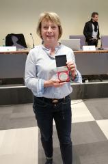 La médaille de la ligue - Michelle VARIN, trésorière du comité départemental depuis 2003, a été honorée hier lors de l'assemblée générale de la ligue Grand Est de natation. Le président David WAGNER lui a remis la médaille de la ligue. Une récompense bien méritée pour Michelle, investie depuis plus de 25 ans dans le petit monde de la natation vosgienne.Toutes nos félicitations ! |